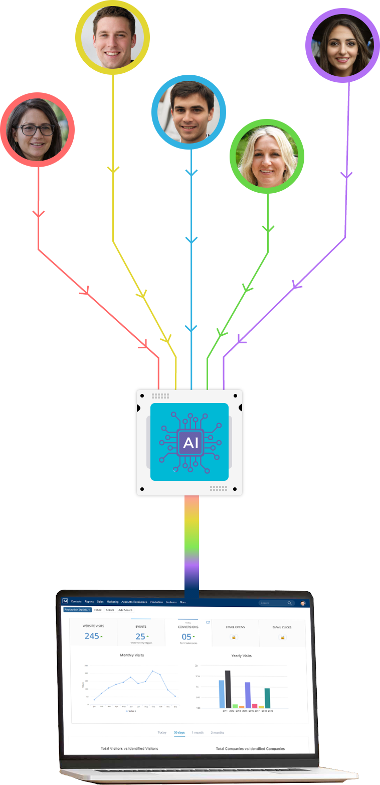 The buying process involves multiple key decision-makers on multiple channels. Our tracking code and CRM combine all digital movements of individuals from the same organization to make selling to a company easier.